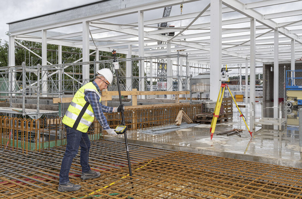Bastón Leica GLS51 desarrollado con el Leica AP20 AutoPole, un sistema inteligente único que aumenta la productividad al permitir la medición de puntos con un bastón inclinado, midiendo automáticamente alturas de objetivos de hasta 2,20 m, además de buscar y bloquear un objetivo específico.