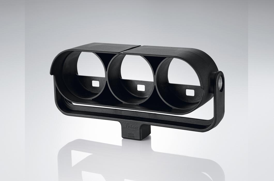 El soporte portaprisma Leica GPH3 le ofrece la posibilidad de colocar tres prismas circulares Leica GPR1 simultáneamente.